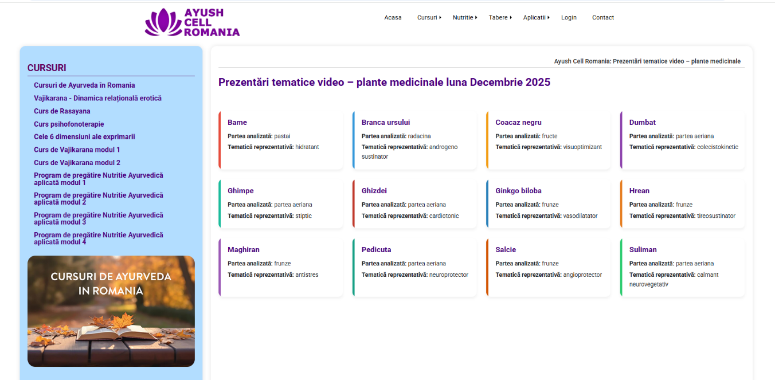 Revista digitală de plante medicinale – setul de prezentări din luna decembrie 2025