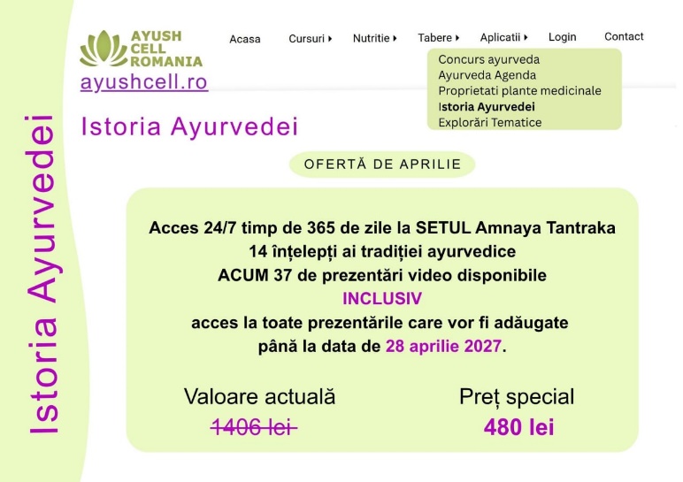 Înscriere și acces: ayushcell.ro/traditia_ayurvedica/amnaya