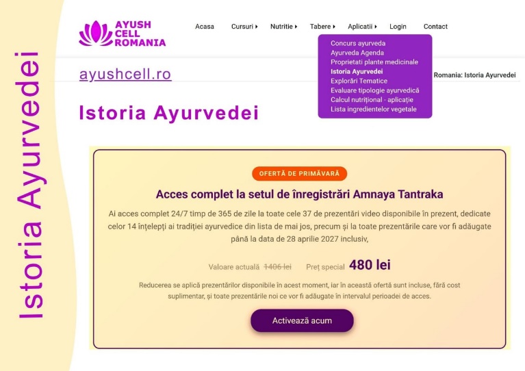 Un instrument educațional online pentru studiu aprofundat, organizare tematică coerentă și acces extins la conținut video structurat despre tradiția Amnaya și marile repere ayurvedice.